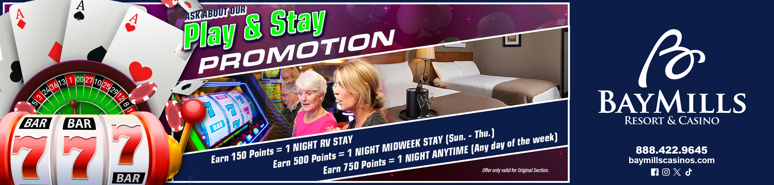 Visit our Player Portal at baymillsrewards.com to find out what your offer is anytime. No more waiting for mail to arrive. Once you are on the page, just enter your Funcard number in the box. That’s it! The more you play, the more we pay!